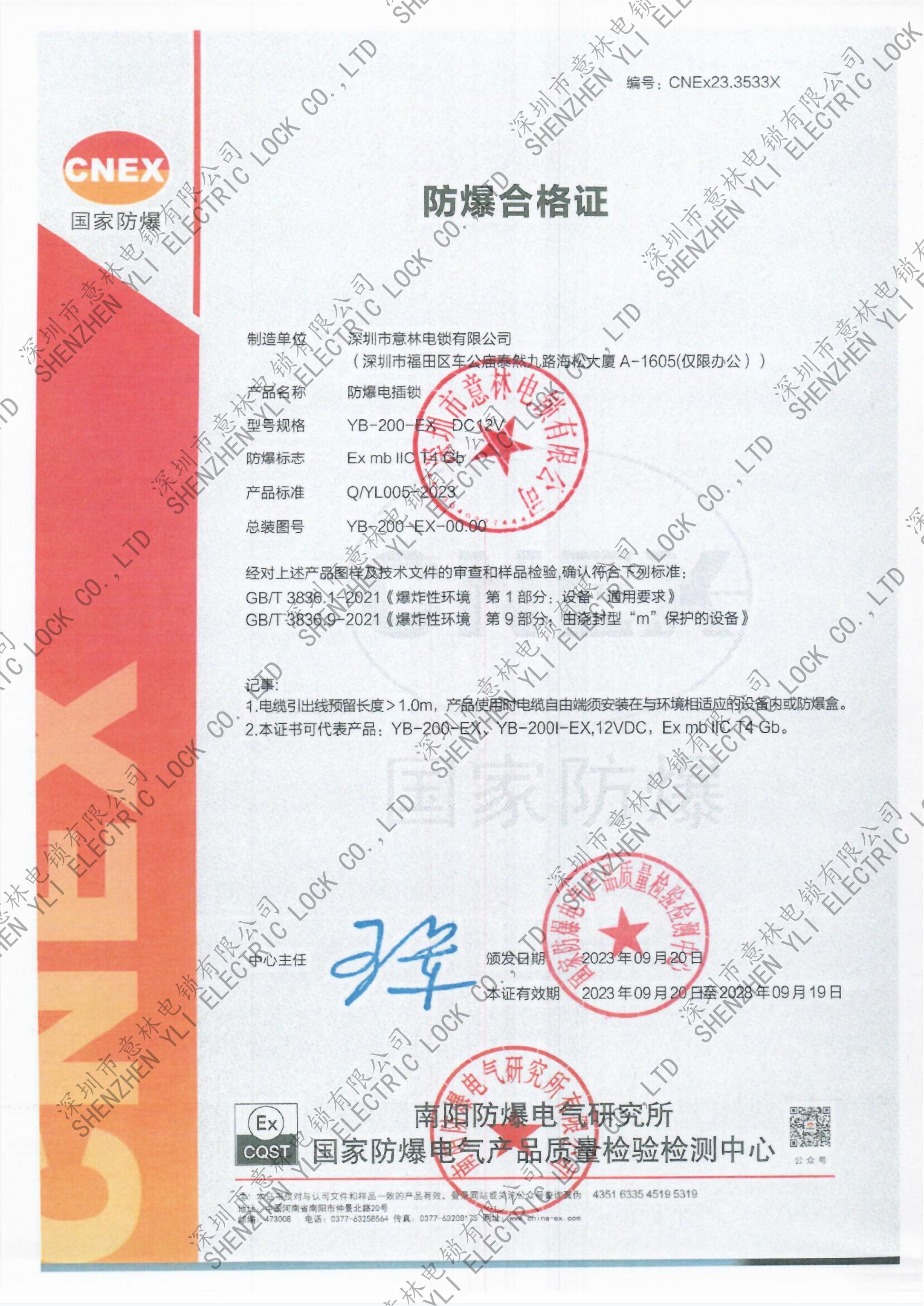 YB-100_200_300_400_500_ 600_700型號(hào)電插鎖CE認(rèn)證