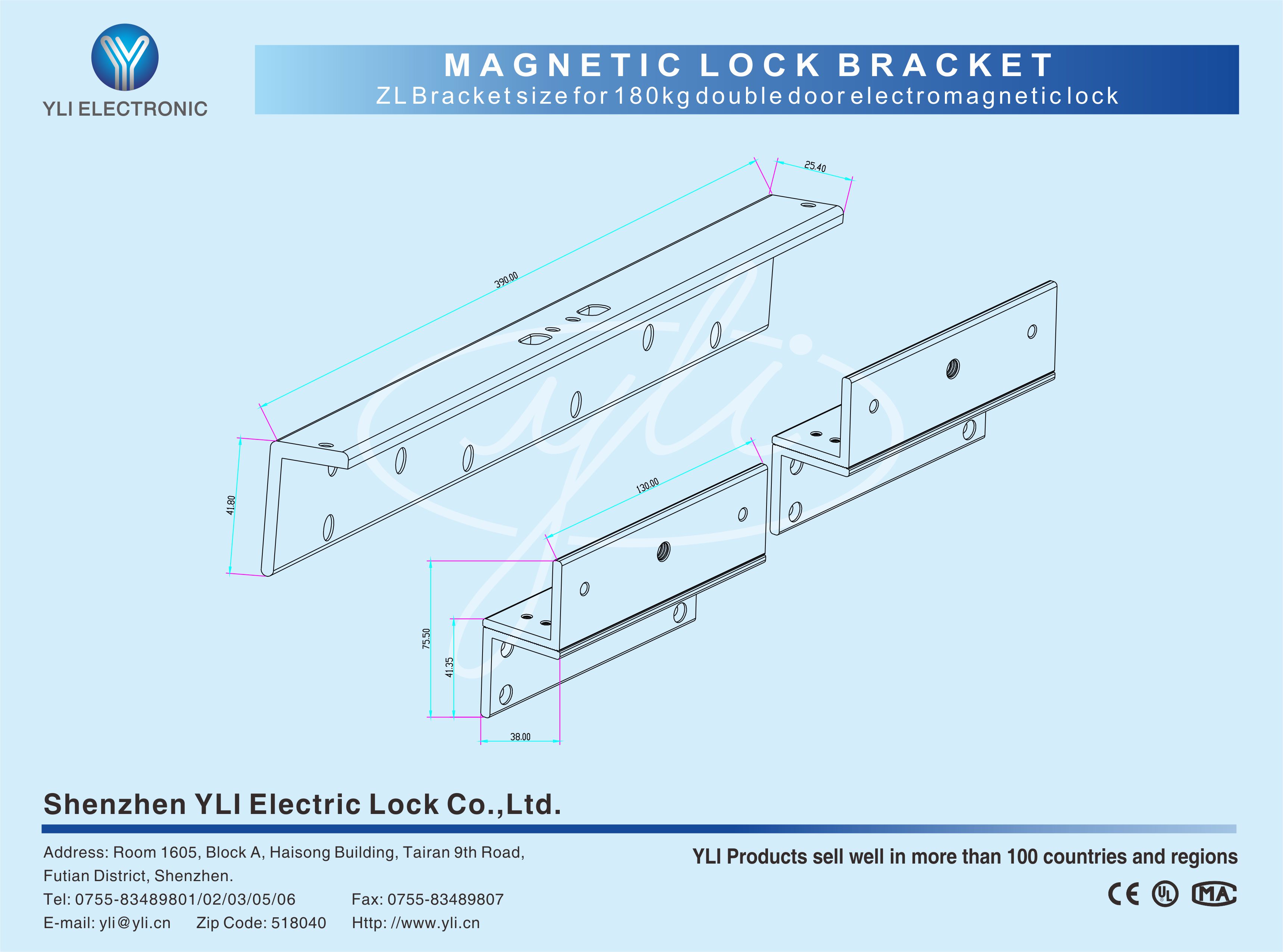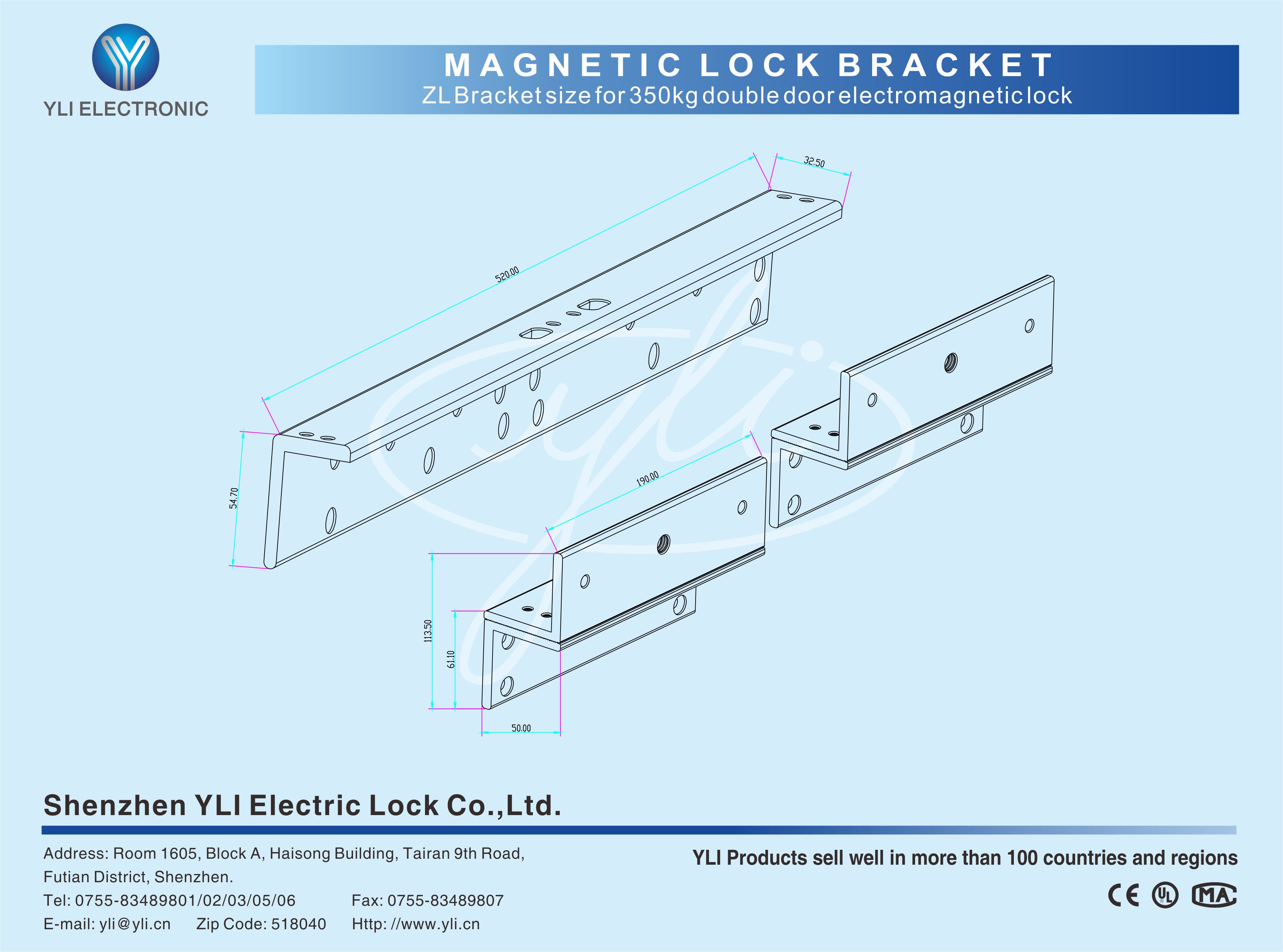 ZL Bracketfor Inward Opening Door and Double Magnetic Lock 1. It is made of two parts and it is used on the inward opening door. 2. MBK-180NDZL/MBK-280NDZL/MBK-350NDZL/MBK-500NDZL are for your choice.3. High Strength Aluminum.