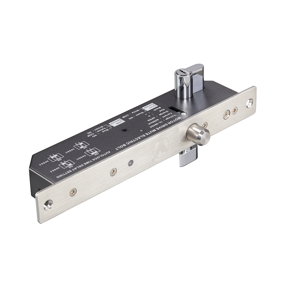 Motor driven mute electric bolt,the bolt is controlled by motor drive to realize lock and unlock. The driving force of the motor is very strong,the bolt can be pushed out by the powerful thrust of the motor to align the door when the door is deformed or misaligned. The parts are made of lightweight materials, work more smoothly, less resistance, can achieve mute when lock and unlock.The PCB is equipped with an electronic protection device to realize the precise control of locking and unlocking. In addition,compared with the traditional electric bolt which uses electromagnet to lock, which is low power consumption, energy saving and environmental protection.