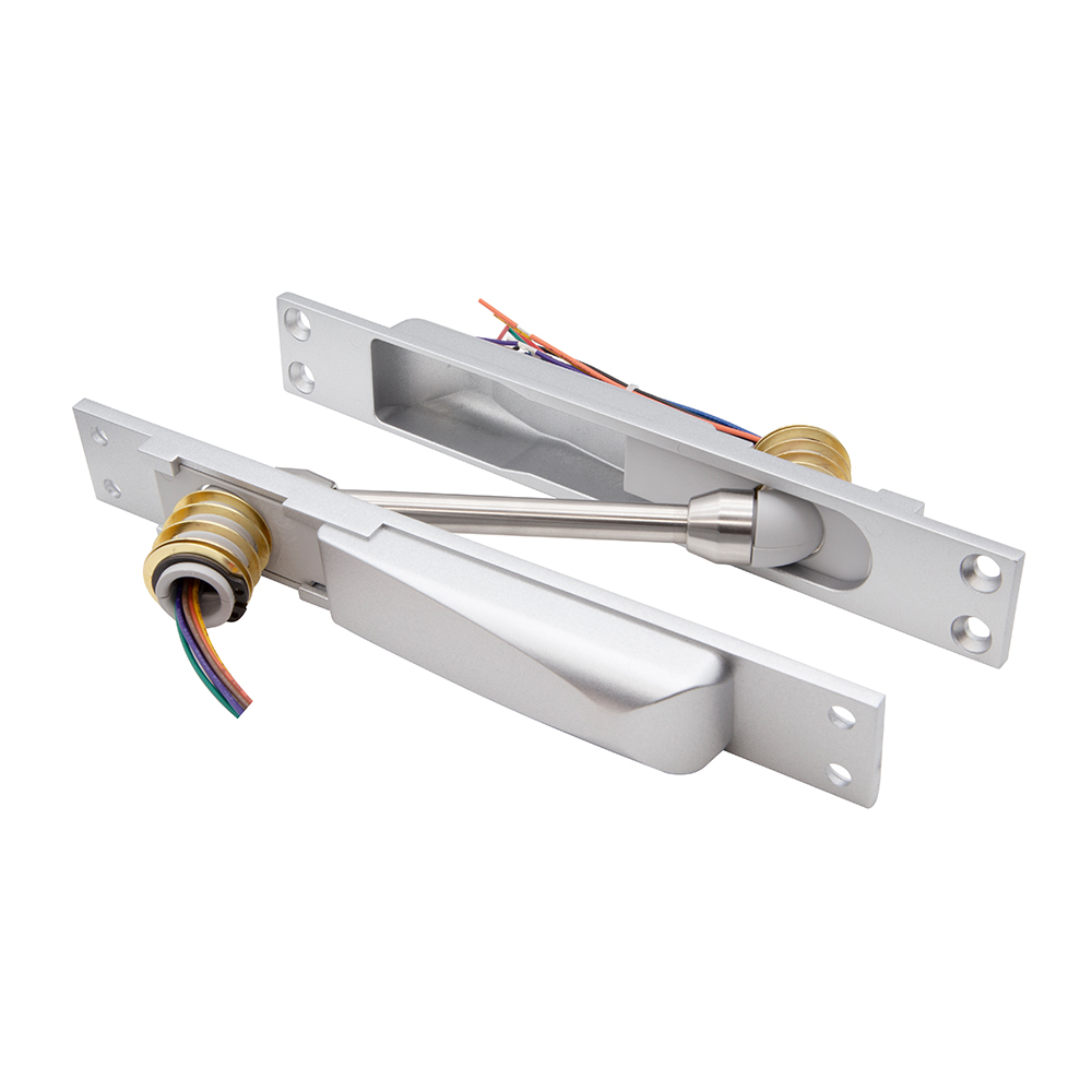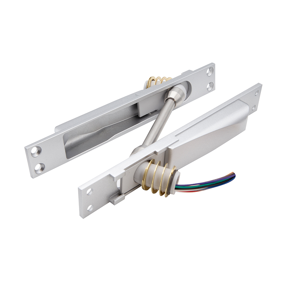 美規設計暗裝式過線保護器,外殼采用鋅合金材質,表面烤銀油處理線管,采用SS304不銹鋼材質,表面拋光處理;電鎖或電器裝置走線經過門縫與門框形成外露暗裝式過線保護器,為有效保護此段電路而設計,防止過線損壞。適用于各種單開門、雙開門、金屬門、木門特殊工藝處理,更堅固、更耐用、更美觀。