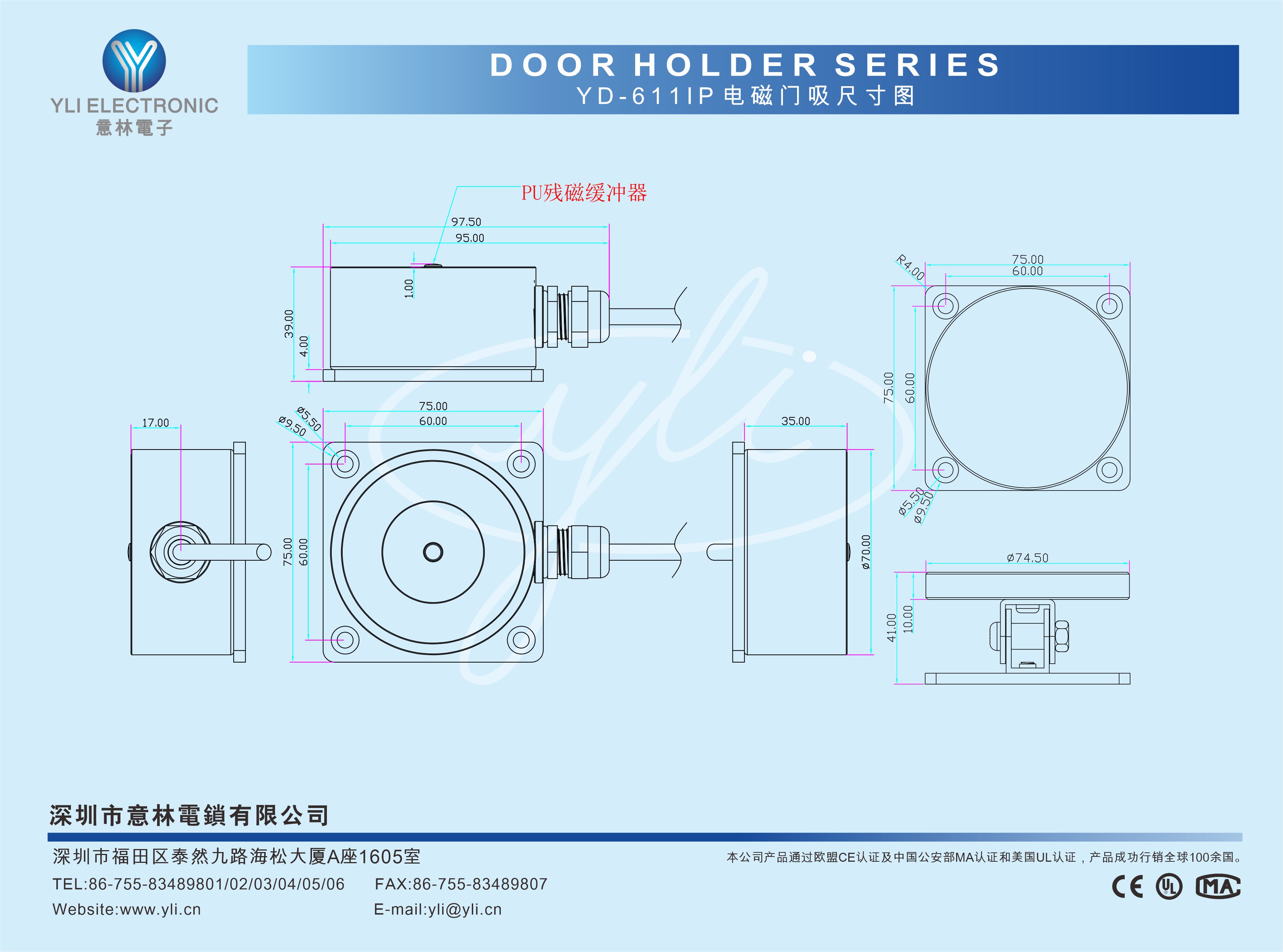 YD-611IP是墻壁式防水型電磁門吸,防水等級IP68,拉力150kg,表面處理采用國際頂級的電鍍工藝,通過國家雙C實驗室500小時鹽霧測試合格,廣泛應用于戶外建筑設施,輪船、核電站、港口、碼頭、地鐵站等潮濕或露天場所使用。專業防殘磁設計,使得更安全耐用。