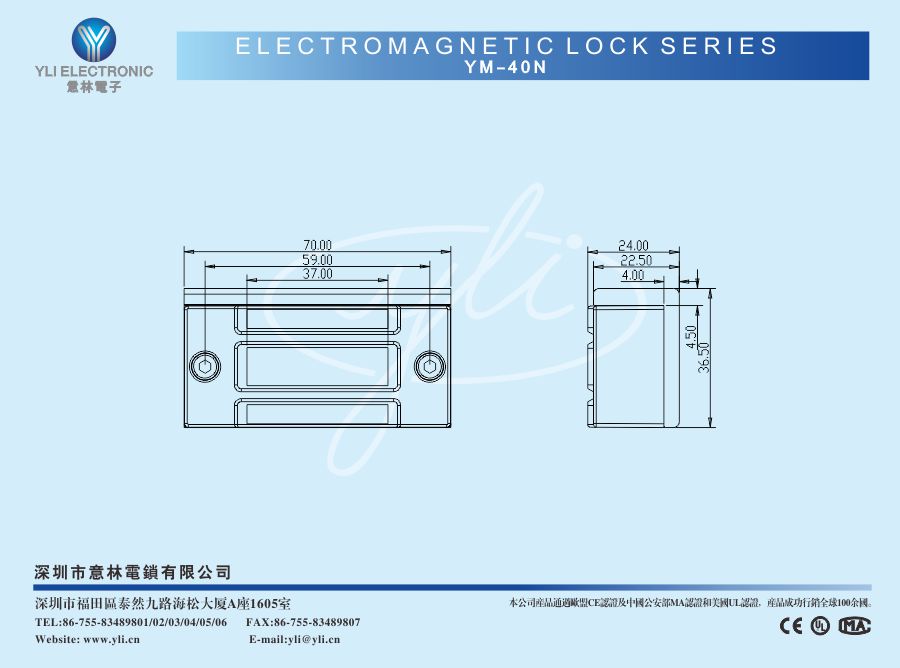 產(chǎn)品關(guān)鍵字: YM-40迷你型單門磁力鎖 YM-40磁力鎖